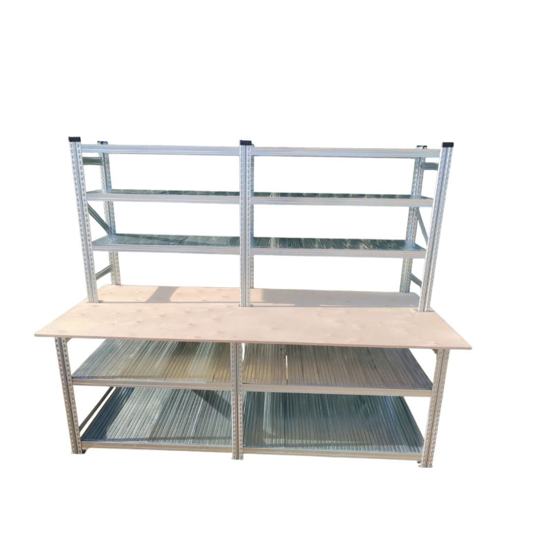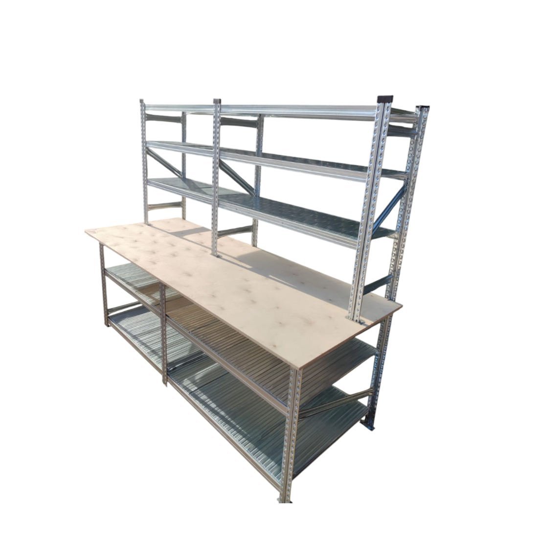 Ten specjalistyczny zestaw – stół roboczy z półkami – to doskonałe i niedrogie rozwiązanie w produkcji, magazynach, strefach kompletacji, pakowania, przyjęcia towaru, a nawet w prywatnym garażu.